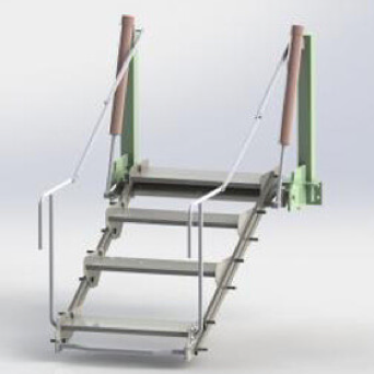 The StorageTechâ„¢ Folding Stairway has been developed to assure safe access from loading racks or main tankers. At the time of operation it must be assured that the folding stairway can be handled easy and safely. These requirements make it necessary that the stair is balanced during its complete up and down movement. The used balance system together with the maintenance free bearings of easy action assure easy operation and simple handling. The main parts and their functions are, spring cylinder, frame, steps, locking device, hand rail, stringboard and contact bracket